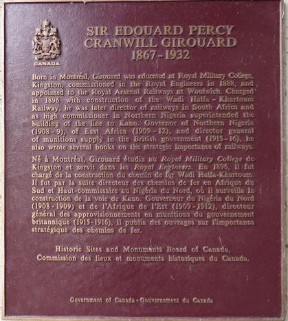 Le 7 février 1976, le nom du major-général sir E. Percy C. Girouard a été donné à l’édifice abritant les départements de mathématiques, de sciences politiques et d’économie du Collège militaire royal du Canada, à Kingston. Diplômé du CMR en 1886, il a été officier du Génie royal canadien et a été nommé directeur des chemins de fer dans l’armée égyptienne. Il a occupé les postes de président des chemins de fer égyptiens, directeur des chemins de fer dans les Forces britanniques en Afrique du Sud, commissaire des chemins de fer de l’Afrique du Sud, haut-commissaire et commandant en chef du Nigeria septentrional et gouverneur et commandant en chef de la République du Kenya. Se rattache au mémorial 24029-015.