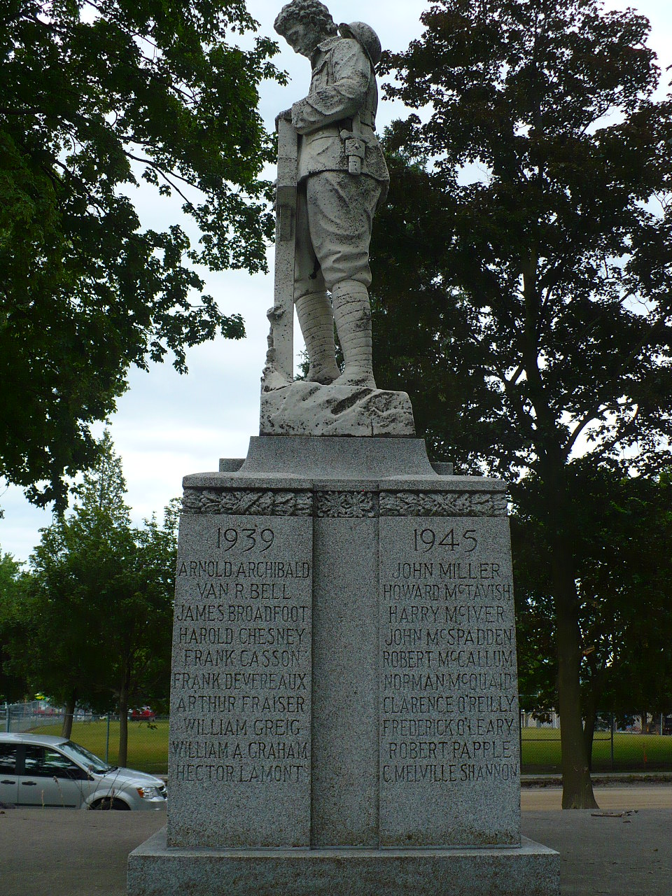 Le Mémorial des soldats a été érigé en 1921 et dédié à ceux qui sont morts pendant la Première Guerre mondiale. Plus tard, les noms de ceux qui sont morts pendant la Seconde Guerre mondiale et les dates relatives à la guerre de Corée ont été gravés. Il comprend une statue représentant un jeune soldat se recueillant au-dessus d’une croix sur laquelle sont engravés les mots « In Flanders Fields ».
