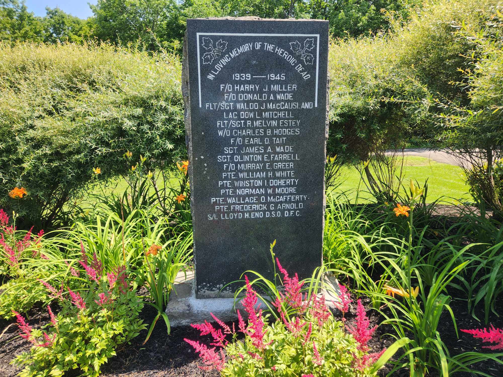 Ce cénotaphe a été érigé en 1967 à la mémoire de ceux qui sont morts pendant la Seconde Guerre mondiale. Il mesure 165 cm de hauteur, 86 cm de largeur et 33 cm de profondeur. Il est entretenu par la Ville de Fredericton.