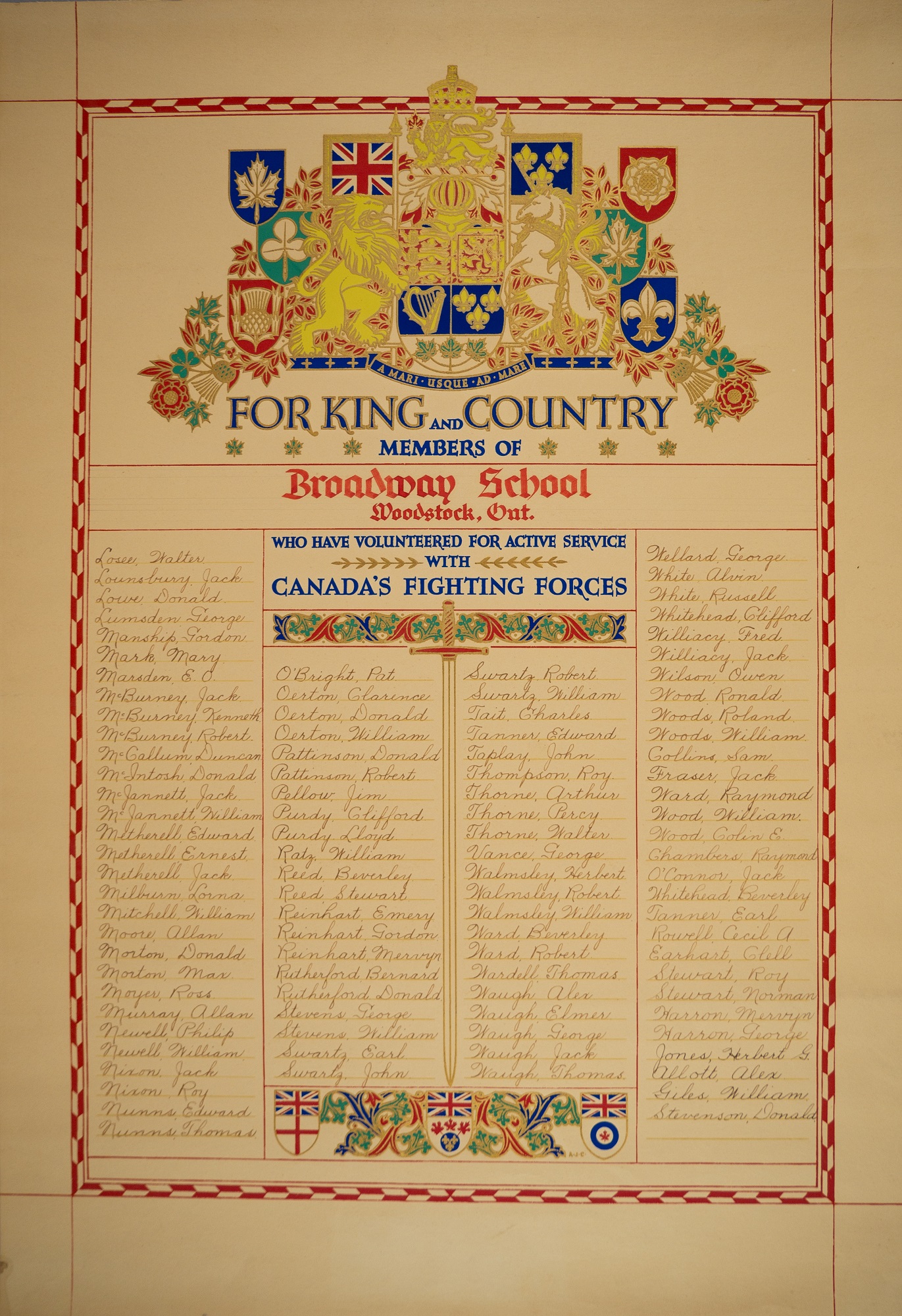 Le tableau d'honneur de la Seconde Guerre mondiale a été érigée à l’école Broadway en reconnaissance et en souvenir de ceux qui ont servi pendant la Première Guerre mondiale. Le tableau d’honneur a été donné au Woodstock Museum National Historic Site en 2015.