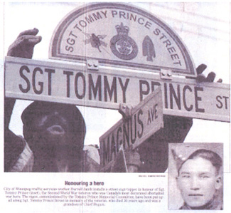 Le sergent Tommy Prince était un important activiste qui a servi pendant la Seconde Guerre mondiale et la guerre de Corée. Son histoire est un des exemples les plus connus des contributions des soldats autochtones en temps de guerre au milieu du XXe siècle, ainsi que du mauvais traitement reçu à leur retour à la vie civile au Canada. Ses réussites ont attiré l’attention des médias nationaux durant sa vie et lui ont mérité de nombreux hommages posthumes.