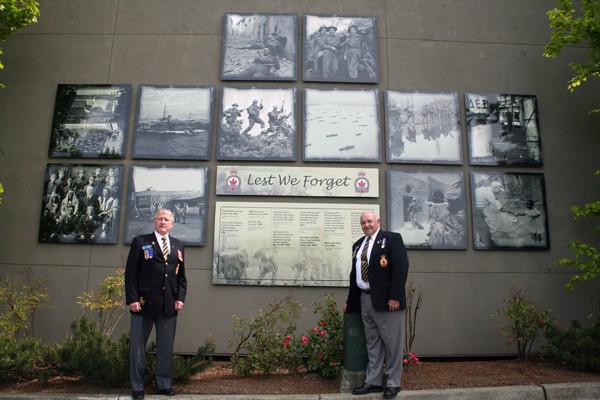 At Sid Williams Theatre, Courtenay Legion members Ron Webber (right) and Dave Bell show off the wall of recognition mural