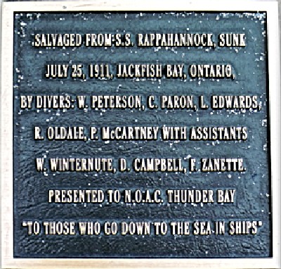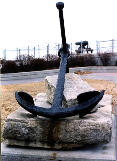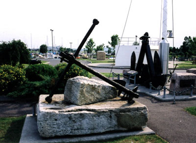 Cloche du Mémorial d’Anchorage, Ancres supérieures, Caronades, Hommage au navires, Plaques du Monument aux marins, et Plaques aux marins de Thunder Bay.
