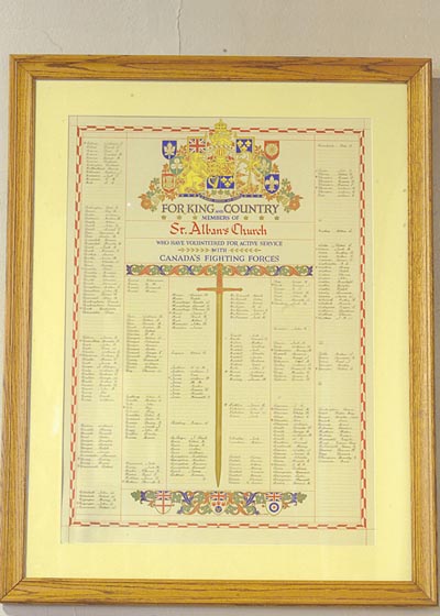 Ces deux Tableaux d'Honneur sont de St Alban, et furent transférés à St Luke en 2005. Ils sont dédiés aux paroissiens que ont servi durant la Première et Seconde Guerre Mondiale.