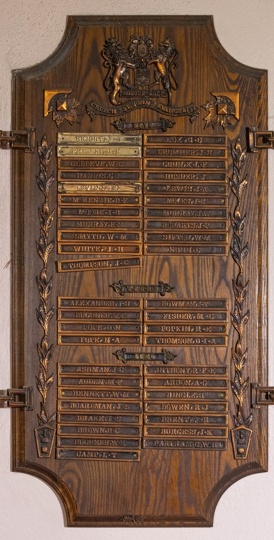 Le tableau d’honneur de la Seconde Guerre mondiale de l’église St. John The Evangelist a été dédié le 24 septembre 1944.