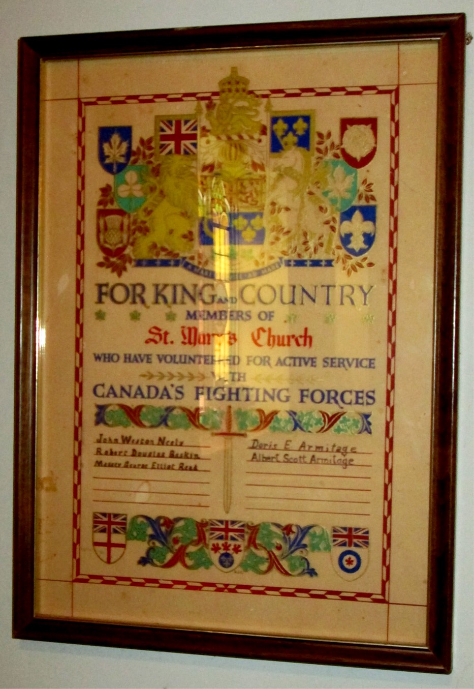 Tableau d'honneur de la Deuxième Guerre mondiale de l'église anglicane St. Mary's
