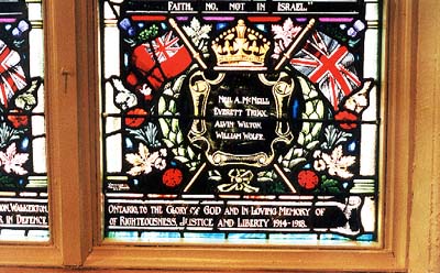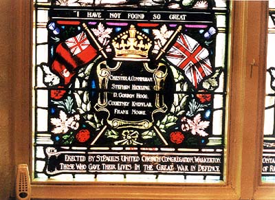 ERECTED BY ST. PAUL'S UNITED CHURCH CONGREGATION, WALKERTON, ONTARIO. TO THE GLORY OF GOD, AND IN LOVING MEMORY OF