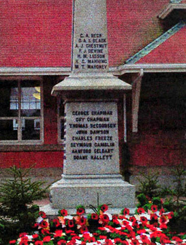 Érigé par le Sussex Women’s Institute et le 8th Canadian Hussars (Princess Louise’s) Regiment, ce mémorial est dédié aux anciens combattants et à leurs morts des Première et Seconde Guerres mondiales et de la guerre de Corée.