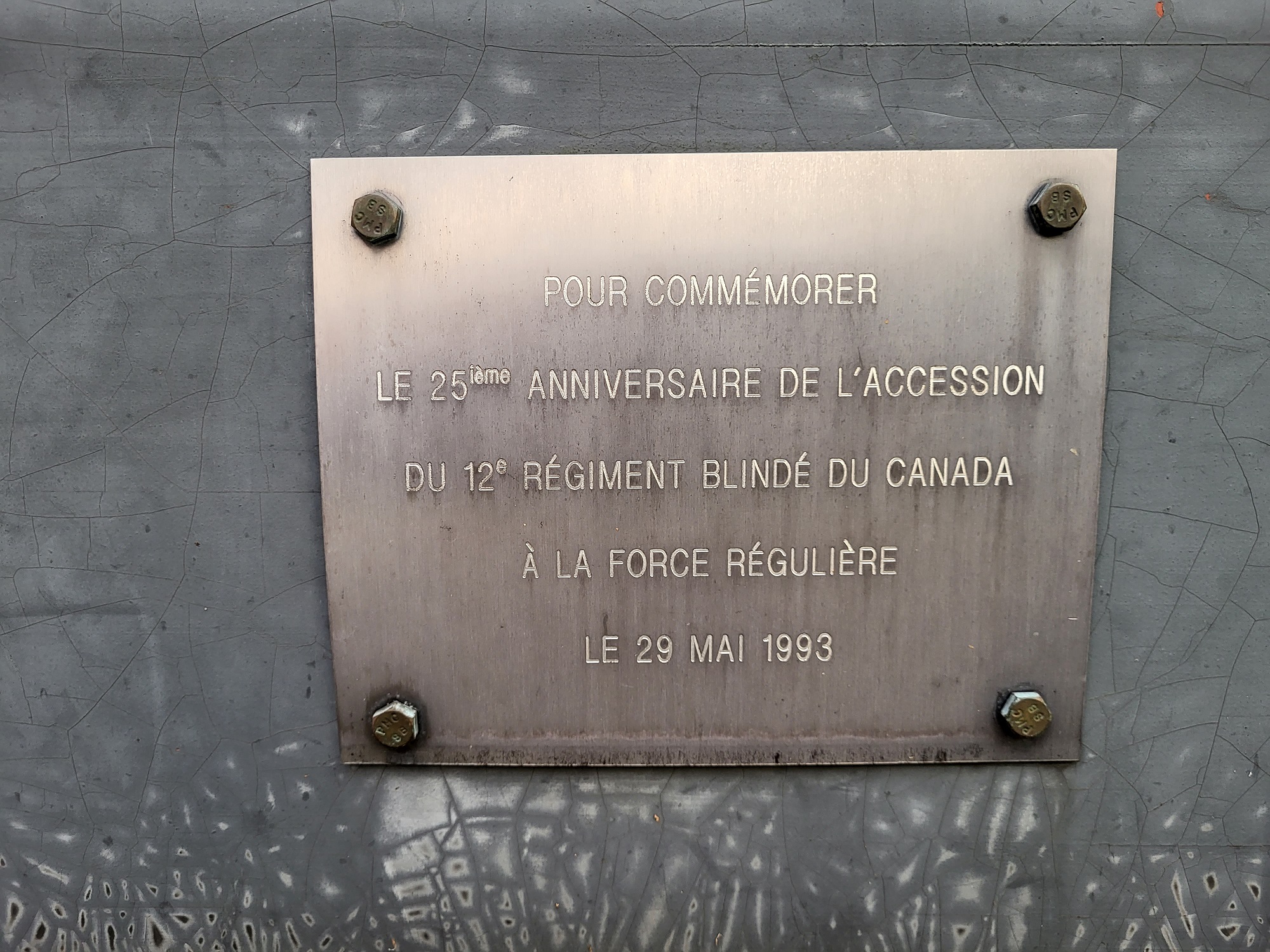 Érigé par le 12e Régiment blindé du Canada, ce mémorial est dédié à l'accession du 12e Régiment Blindé à la force régulière.