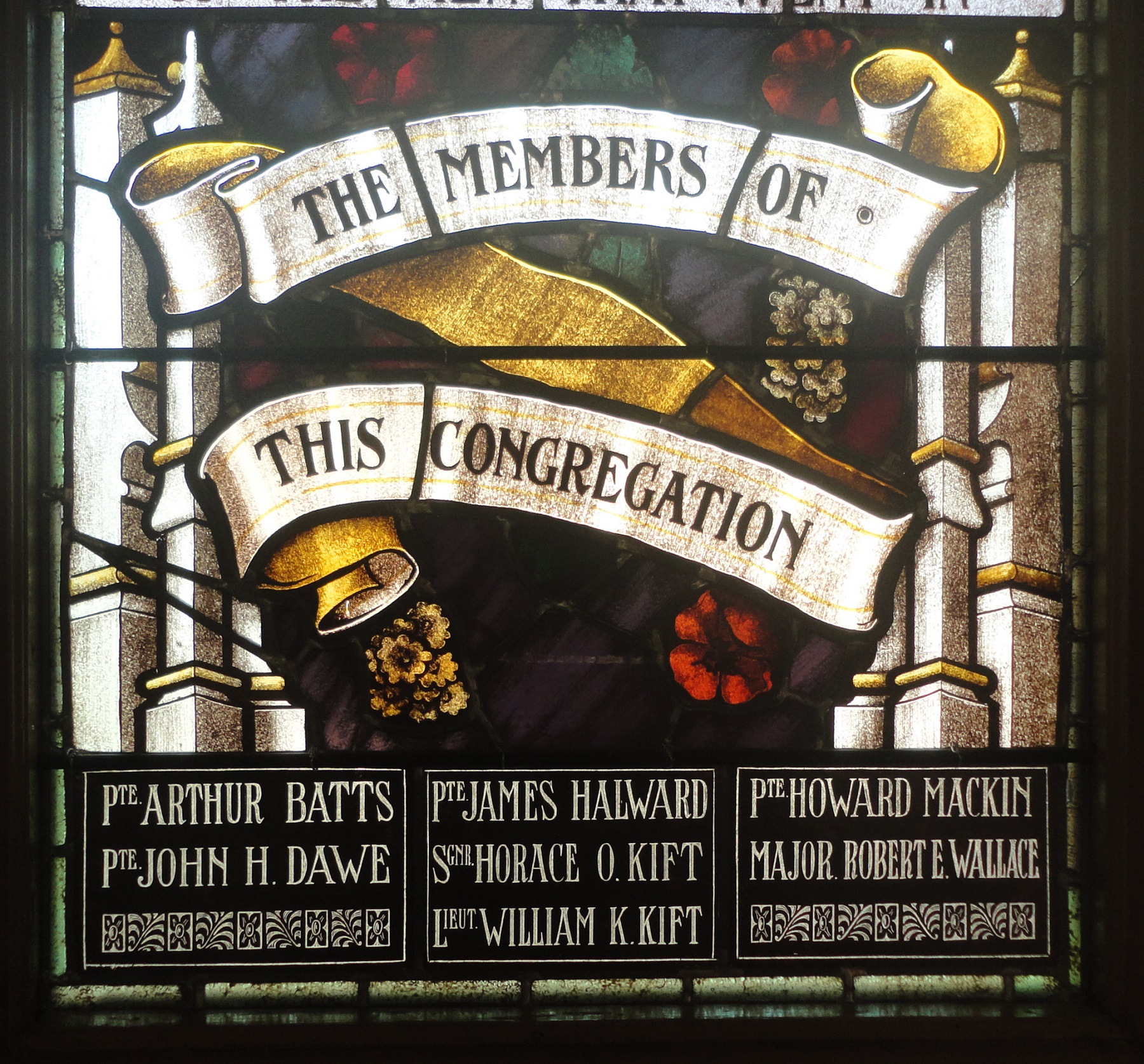 Ce vitrail est un hommage aux hommes de l’église unie Trinity et de la communauté qui ont péri pendant la Première Guerre mondiale.