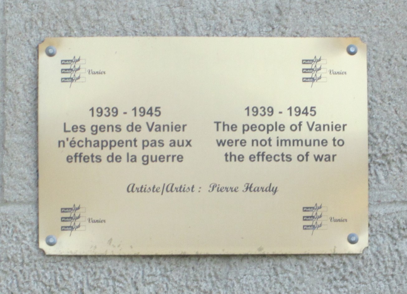 Cette murale est dédiée aux citoyens de la ville de Vanier qui ont contribué à l’effort de guerre. Elle illustre diverses contributions à l’effort de guerre, notamment un ouvrier aux munitions qui travaille dur dans une fabrique de munitions, des femmes en uniforme, un Spitfire, les NCSM Eastview K665 (une frégate de la classe River ayant servi dans la Marine royale canadienne de 1944 à 1946), ainsi que des hommes en uniforme et au champ de bataille.