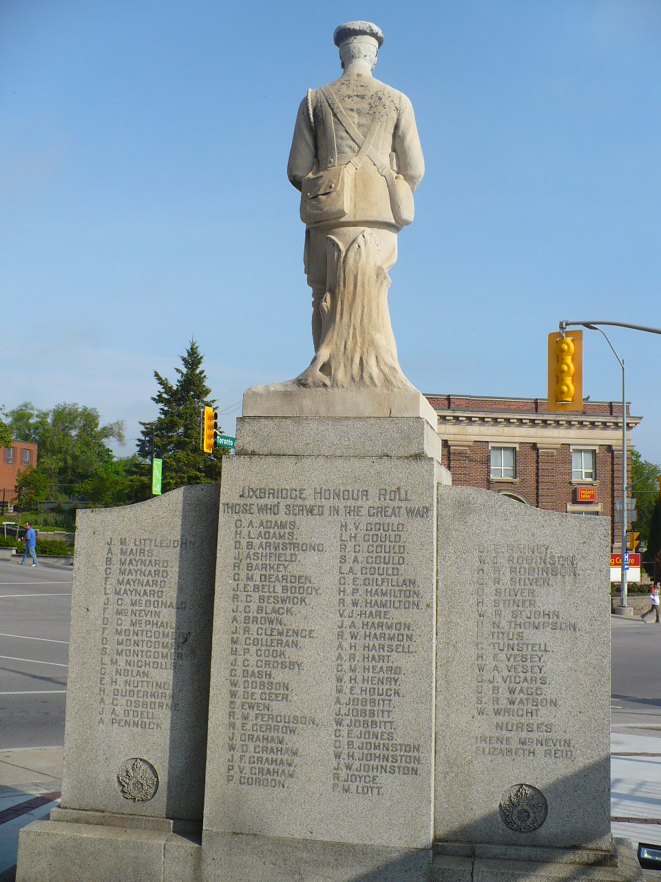 Ce mémorial est dédié aux habitants d’Uxbridge et du district qui ont donné leur vie pendant les Première et Seconde Guerres mondiales et la guerre de Corée. Il a été érigé par l’Ordre impérial des filles de l’Empire (I.O.D.E.) et les citoyens d’Uxbridge.