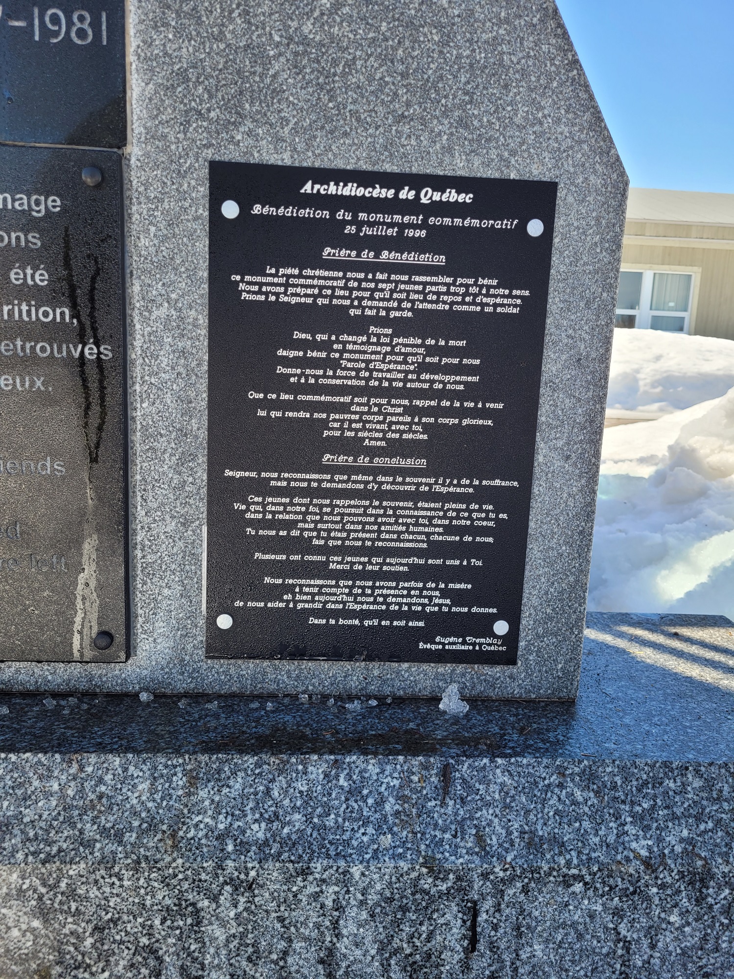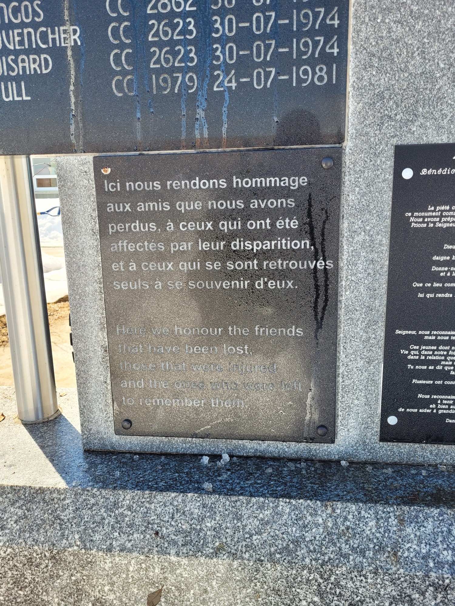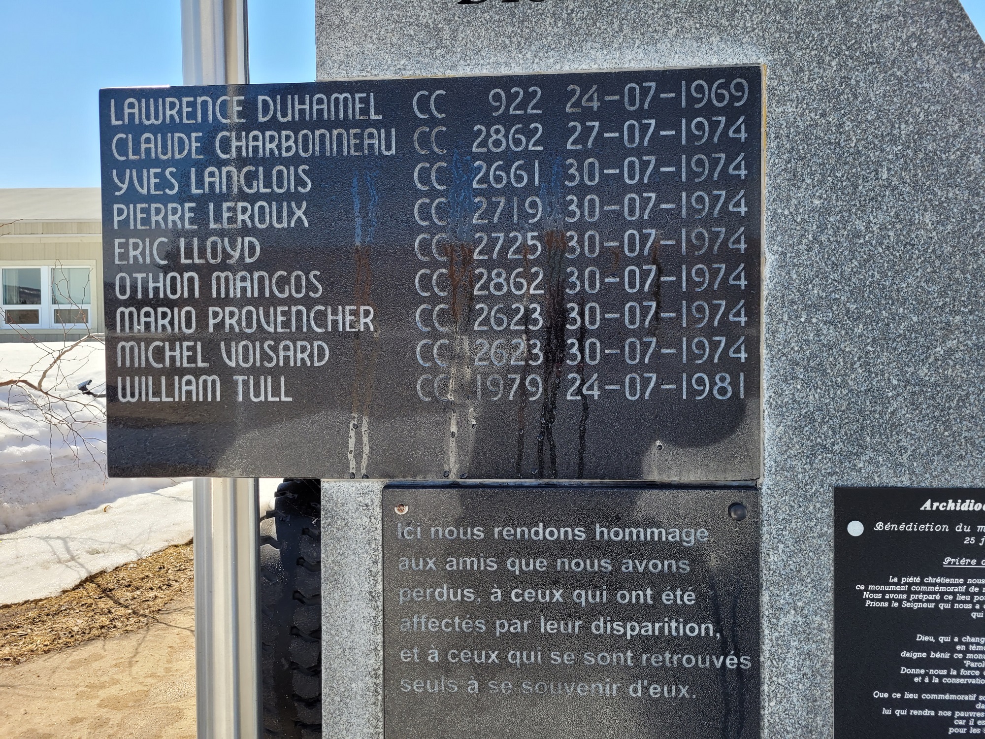 En juillet 1996, le Monument commémoratif des cadets de Valcartier a été dédié à tous les cadets qui ont perdu la vie durant l’entraînement d’été au Centre d’entraînement des cadets de Valcartier : neuf au total. Il a été érigé grâce à des fonds provenant du gouvernement du Canada, à des fonds non publics du Camp des cadets de Valcartier et à des fonds de la Ligue des cadets de l’Armée du Canada. Le monument commémoratif a été réalisé par les Monuments funéraires Saint-Charles-Garnier.