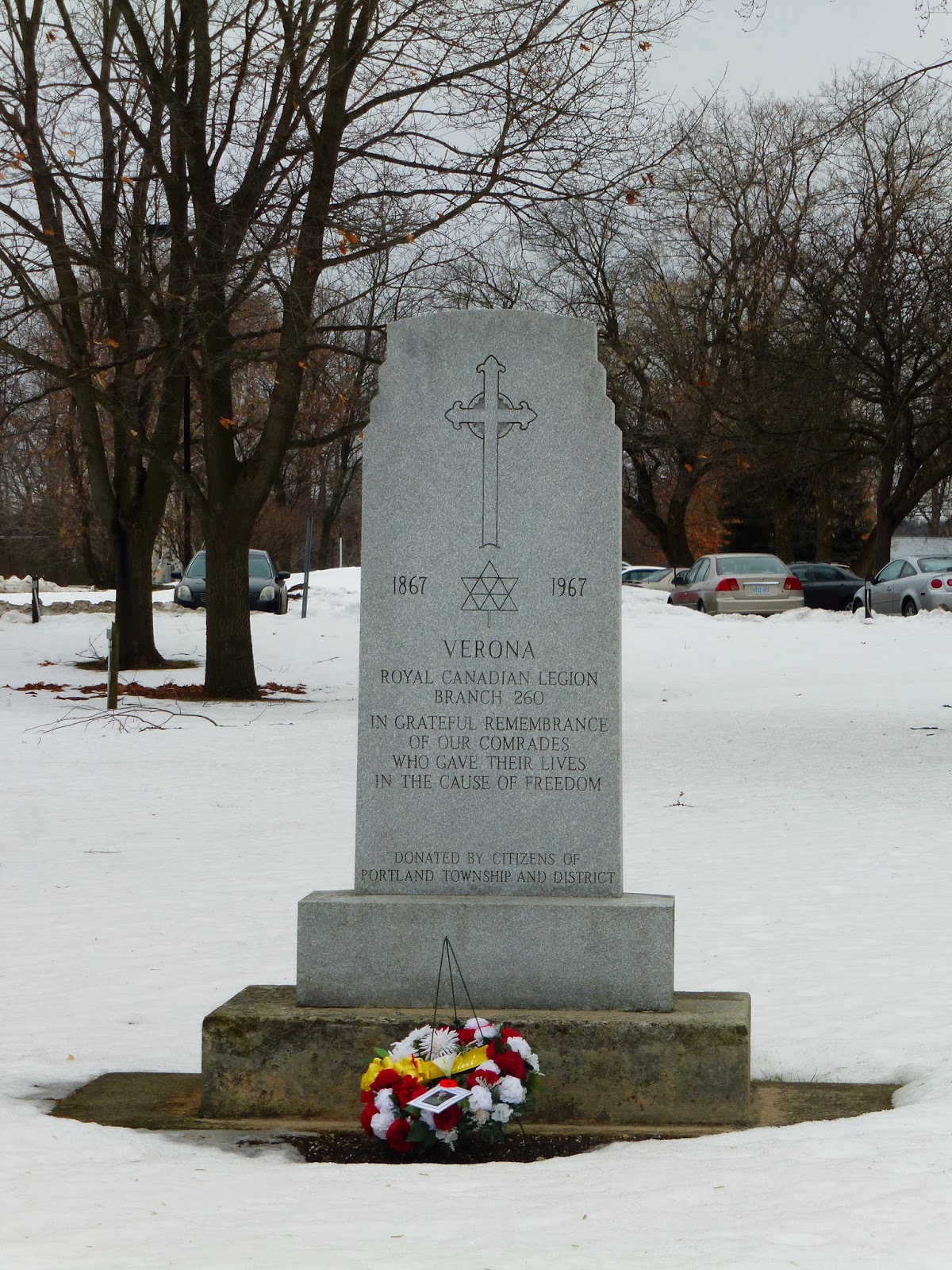 Le Cénotaphe de Verona a été érigé dans le cadre des activités du centenaire de 1967. Il est commandité par la filiale 260 de la Légion royale canadienne. Il a été donné par les citoyens du canton et district de Portland en souvenir reconnaissant de nos camarades qui ont donné leur vie pour la liberté.
