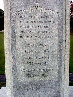 Ce mémorial est dédié aux hommes et aux femmes du comté de Victoria qui ont été tués en service au cours des Première et Seconde Guerres mondiales et de la guerre de Corée.