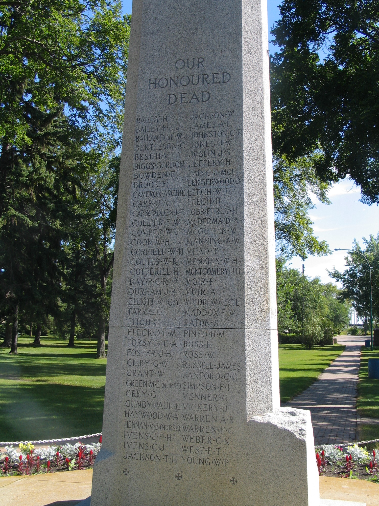 Le cénotaphe a été érigé dans le parc Victoria, en souvenir des personnes des environs qui ont servi et sont morts durant leur service militaire. Le grand pilier de pierre a un entourage paysagé et un mât de drapeau. La colonne a une croix gravée sur un côté, au dessus des années de la Première Guerre : 1918, 1917, 1916, 1915 et 1914. En avant se trouve un épée insérée dans la pierre. Sur la surface plane en avant de l’épée, on lit YPRES to MONS.