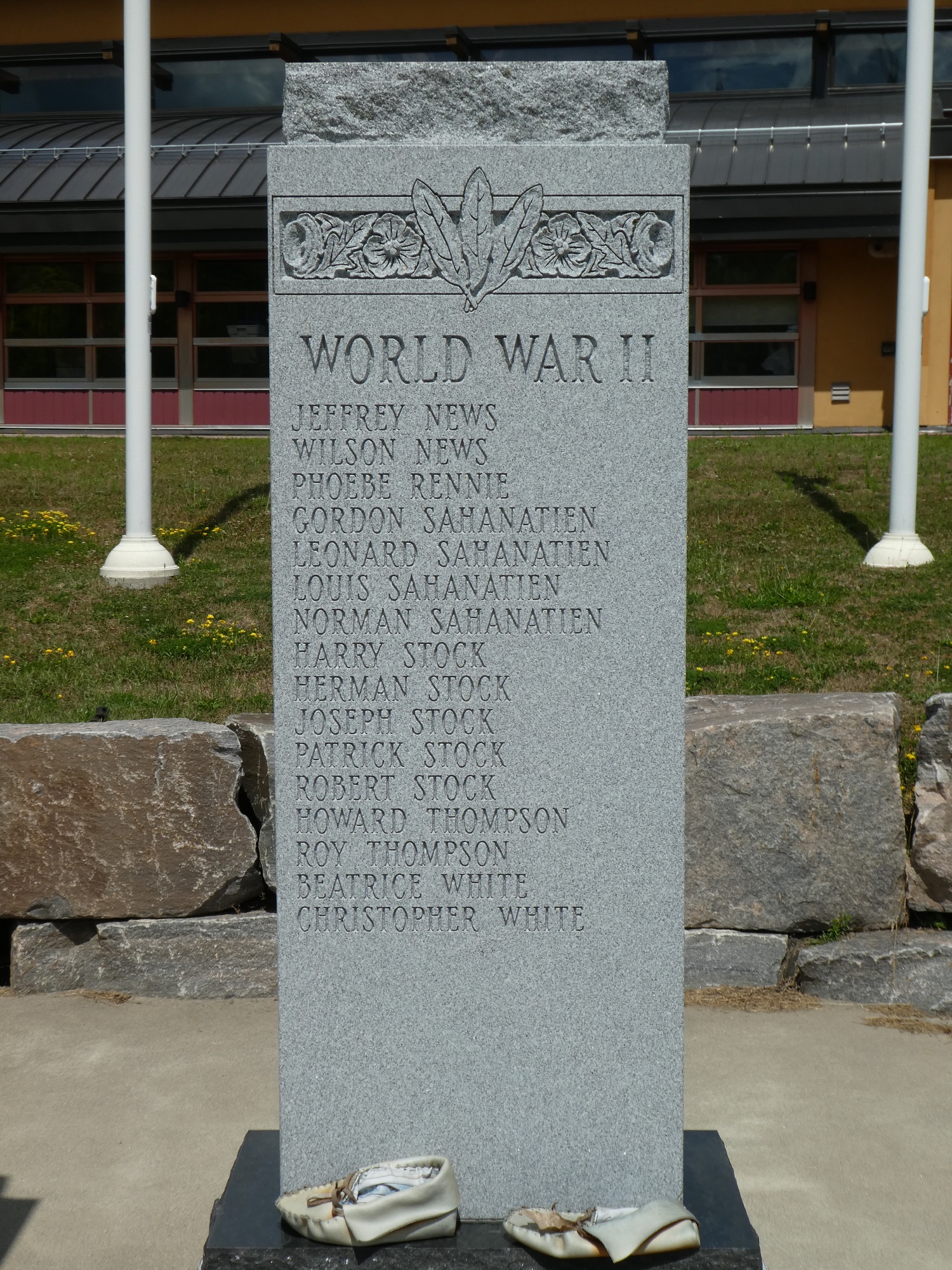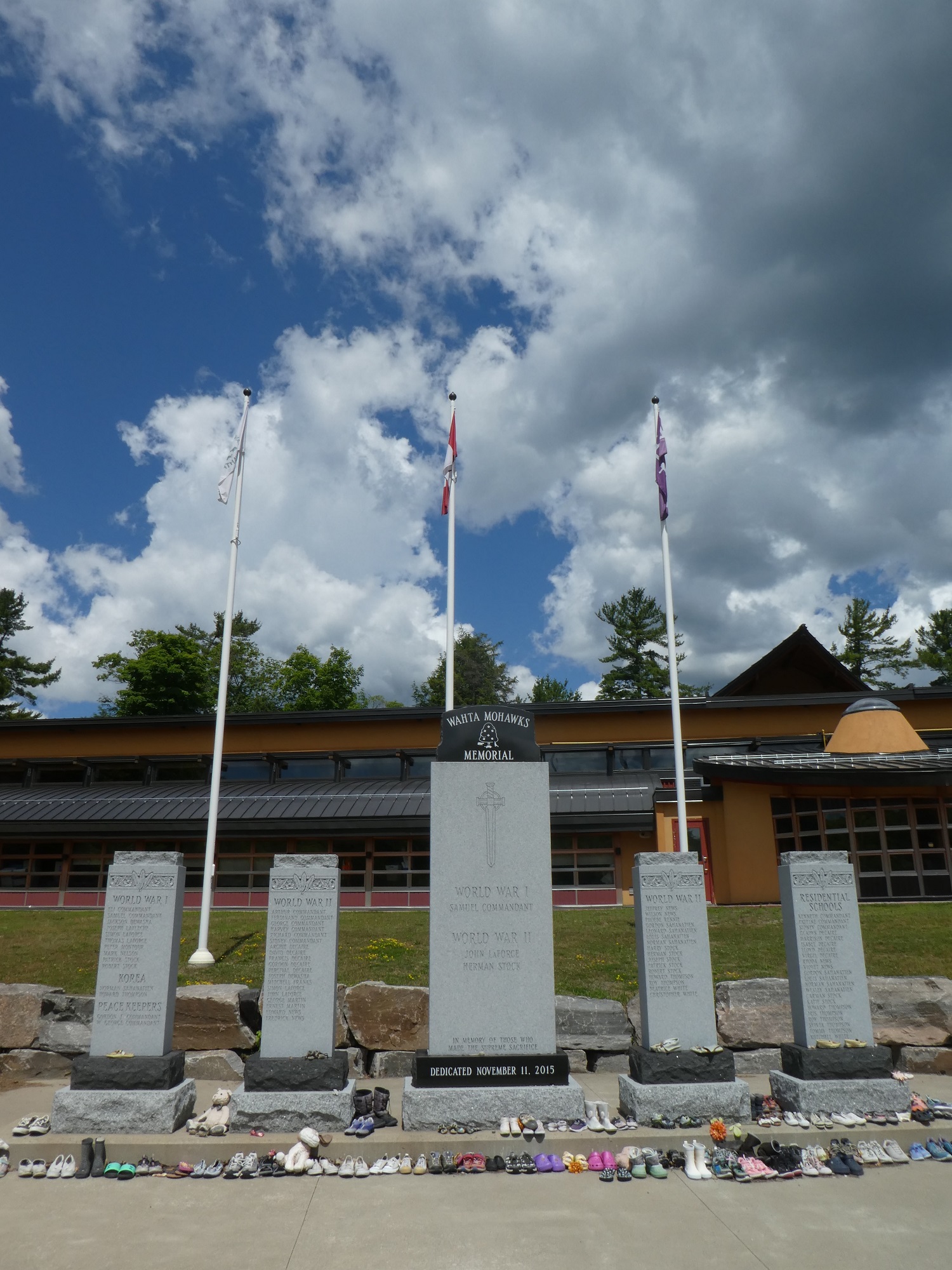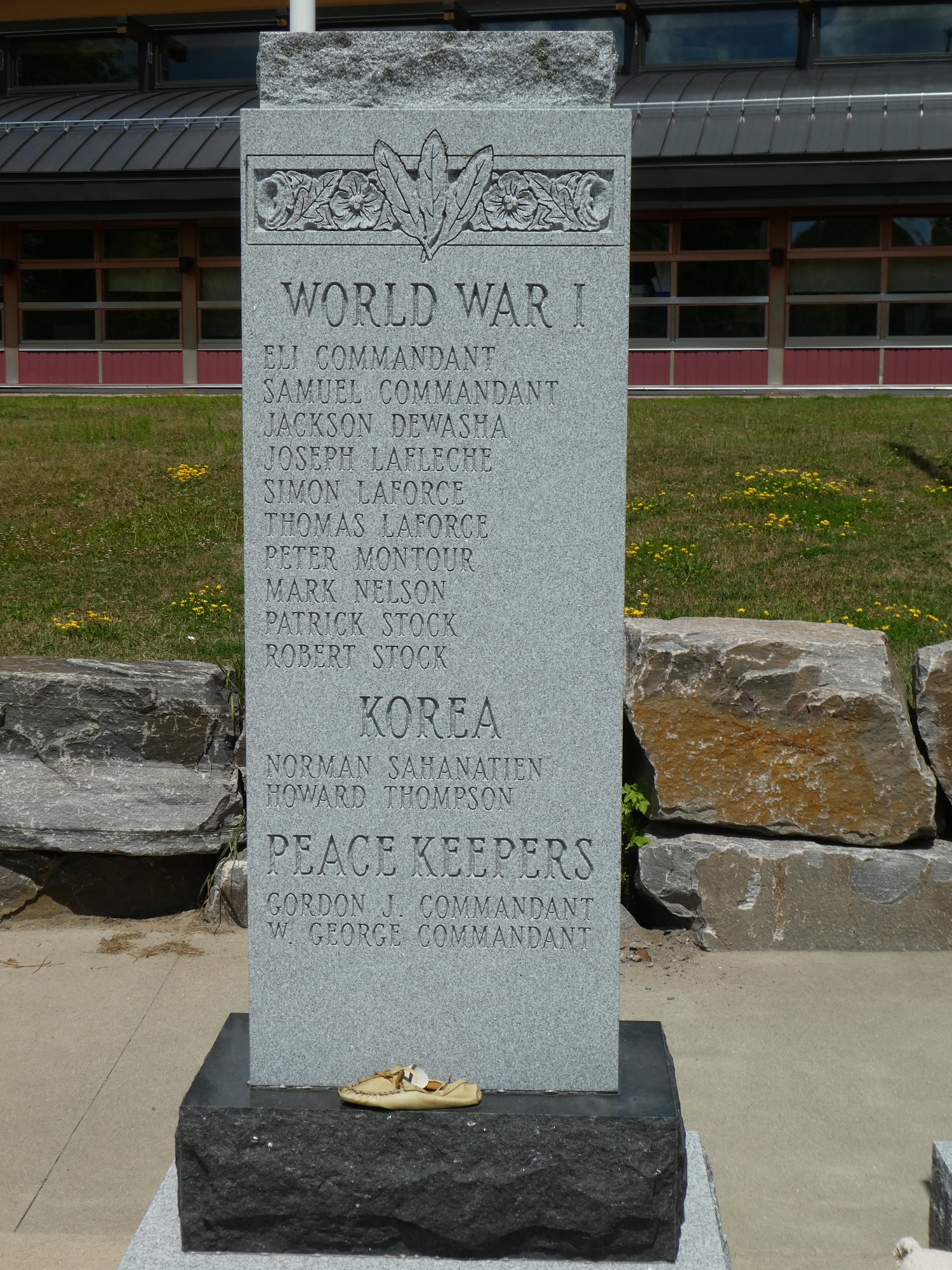Érigé par les aînés de la Réserve Mohawk Wahta, ce mémorial est dédié à ceux de la Réserve qui sont morts au combat durant les Première et Seconde Guerres mondiales et à toutes les personnes qui ont servi pendant les deux Guerres mondiales et la guerre de Corée. Le cénotaphe était à l’origine situé dans l’ancien centre communautaire, au 2343, rue 38 du district de Muskoka, avant d’être transféré à son emplacement actuel au nouveau centre communautaire.