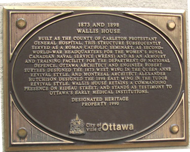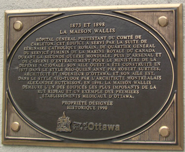 Le bâtiment aujourd’hui connu sous le nom de Wallis House a été construit en 1873, en tant qu’hôpital général protestant du comté de Carleton. Il a conservé sa vocation d’hôpital jusqu’en 1924, puis a servi comme séminaire catholique jusqu’en 1943, année où les forces armées s’y sont installées pour l’utiliser comme quartier général du Service féminin de la Marine royale du Canada tout au long de la Seconde Guerre mondiale. La Marine lui a donné le nom de Wallis House, en l’honneur de Provo Wallis, héros de la guerre de 1812. Après la Seconde Guerre mondiale, le bâtiment a servi à héberger les anciens combattants qui rentraient au pays et, pendant les années 50, il a été utilisé à diverses fins militaires, pour finalement devenir le foyer du 28e Bataillon des services. En 1994, il a été vendu à un promoteur immobilier, qui l’a transformé en condominiums.