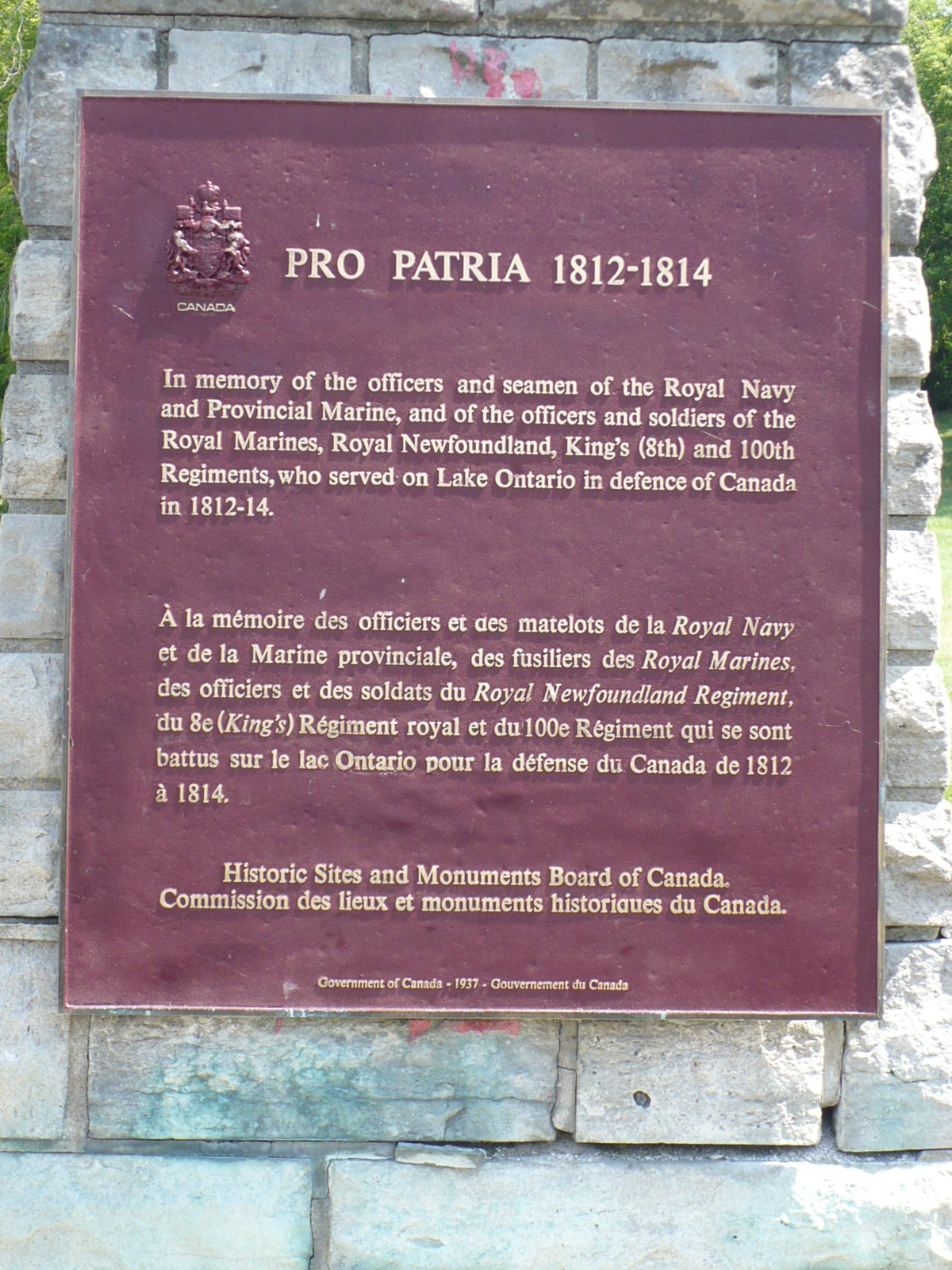 Le monument commémoratif de la guerre de 1812, composé d’un cairn de pierre, d’une plaque de bronze et d’une ancre, a été érigé à la mémoire des officiers et des marins de la Royal Navy et de la Provincial Marine qui ont servi sur le lac Ontario pour défendre le Canada.