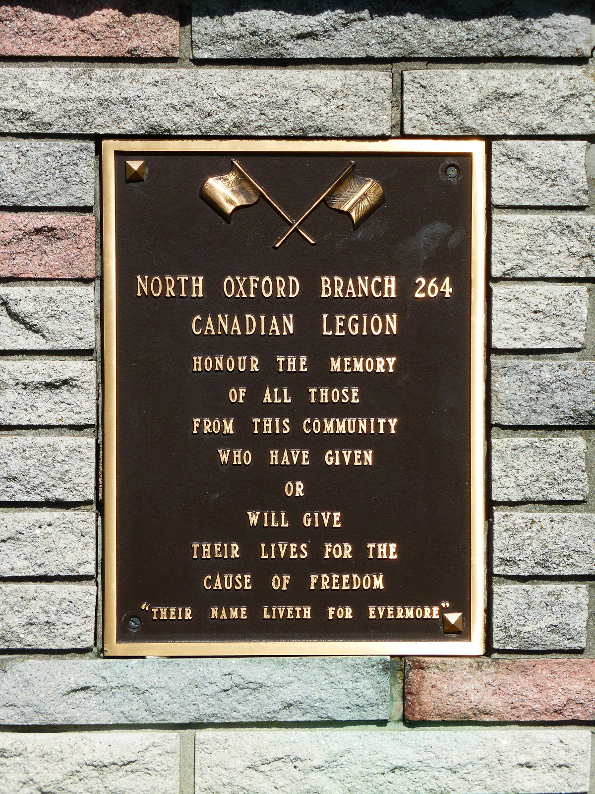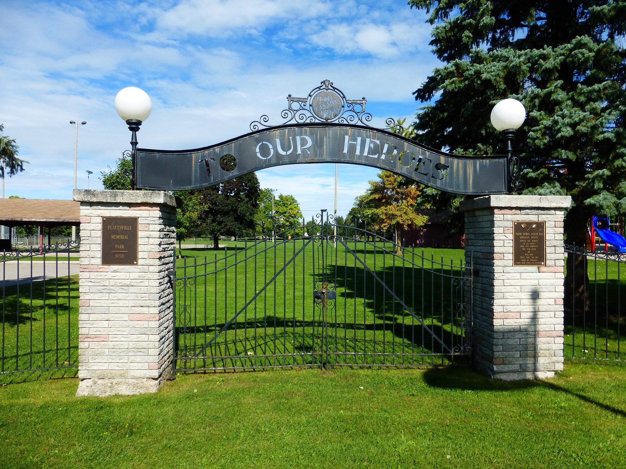 Le portail commémoratif de guerre a été inauguré en août 1921 en l’honneur des membres de la communauté qui ont donné leur vie au cours de la Première Guerre mondiale. Le portail était composé de lourds piliers en brique et en pierre, surmontés d’un arc en fer et de deux portes doubles en fer. De plus, une lourde clôture en piquets de fer délimitait le parc de part et d’autre de la du portail principal. Plus tard, on a ajouté les noms de ceux qui sont tombés au combat au cours de la Seconde Guerre mondiale. La structure a été érigée par la ville de Plattsville et déplacé au parc Memorial en 1958.