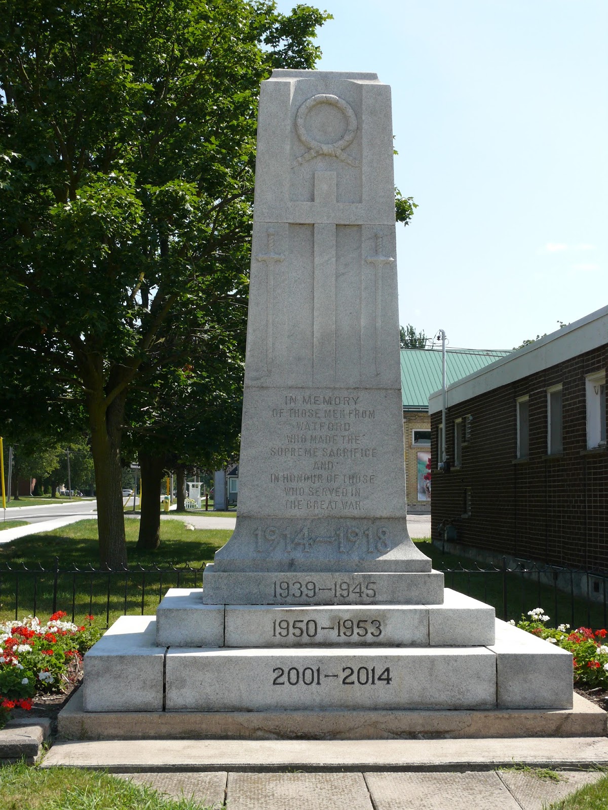 Ce mémorial, érigé par la Légion royale canadienne, est dédié à ceux de la région qui sont morts durant les Première et Seconde Guerres mondiales et la guerre de Corée.