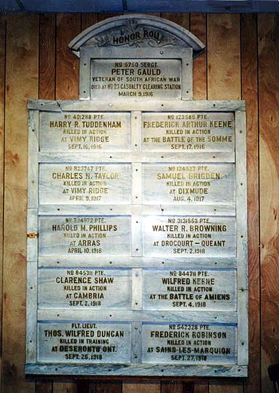 Mémoriaux, monuments et cimetières partout au Canada rendant hommage à ceux qui ont servi.