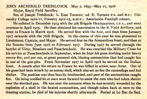 Fils de Joseph et Esther R. Trebilcock, de Toronto, Ontario.