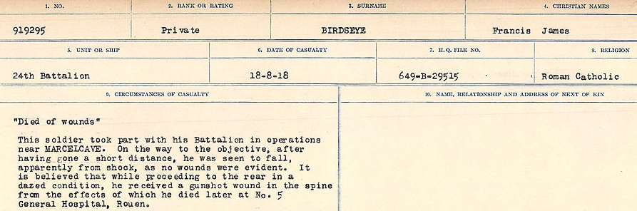 Galerie numérique de Soldat Francis James Birdseye