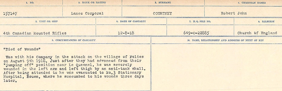 Galerie numérique de Caporal suppléant Robert John Courtney