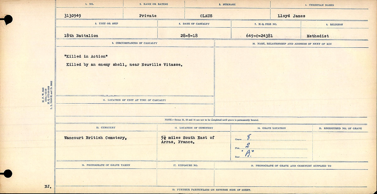 Fils de James et Nettie Claus, de Erieau, Ontario.
