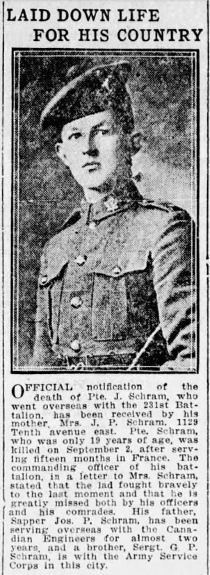 Fils de Joseph Peter et Marie Louise Schram, de 1129, 10th Avenue East, Vancouver, Colombie-Britannique.