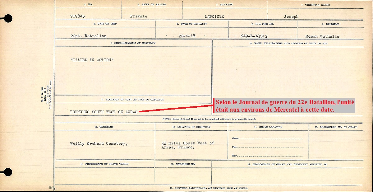 Galerie numérique de Soldat Joseph Ernest Lapointe