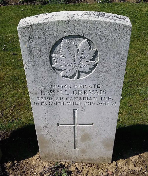 Fils de Gilbert Gervais (décédé 1922) et Henriette Bertrand, de La Passe, Renfrew, Ontario. Il avait déclaré être né en 1885 lors de son enrôlement mais ceci était en fait l’année de son baptême.