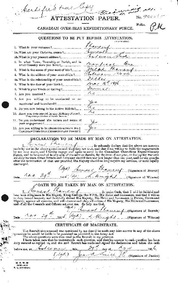 Galerie numérique de Soldat Ernest Phaneuf