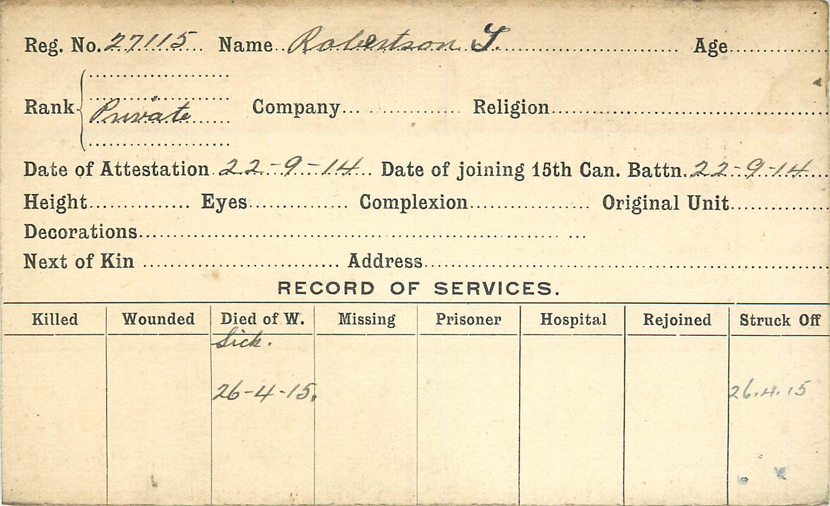 Galerie numérique de Soldat Thomas Robertson
