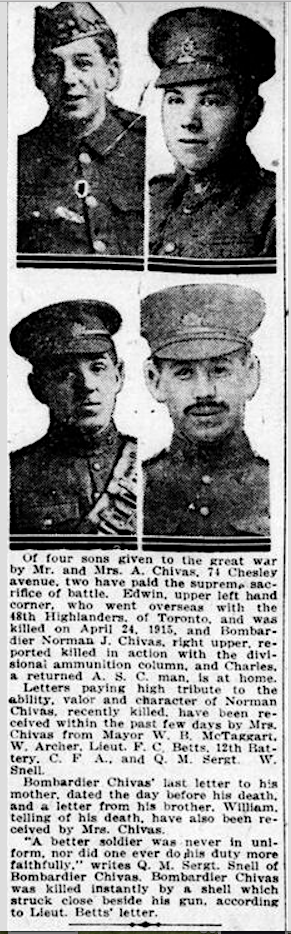 Frère du soldat Edwin John Chivas, décédé au service du Canadian Infantry (Central Ontario Regiment).