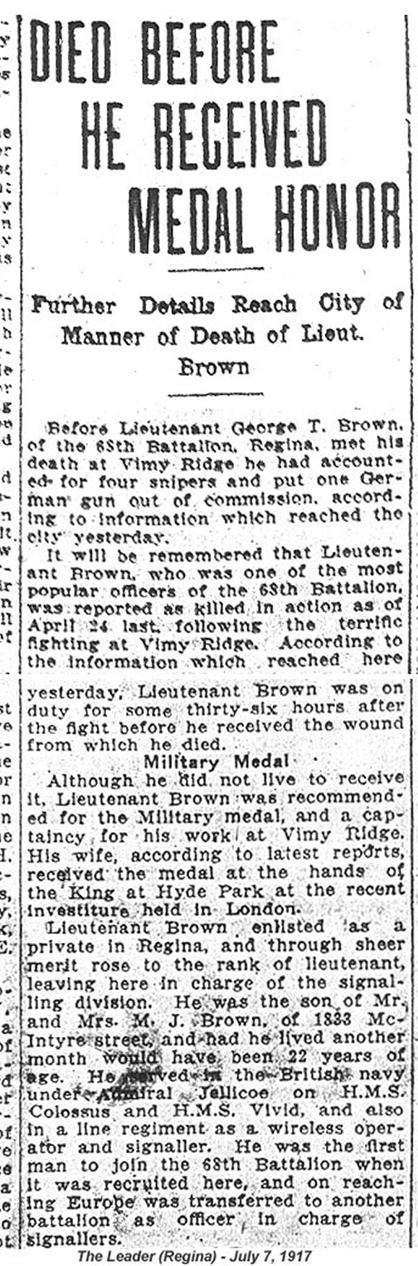 Enrôlement : 15 janvier 1916 Regina, Saskatchewan