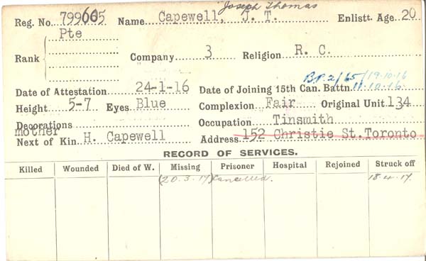 Galerie numérique de Soldat Joseph Thomas Capewell