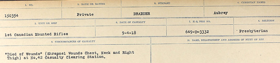 Fils de John et Mary Butler Deadder, de Forest Home, comté de Kings, Nouvelle-Écosse.