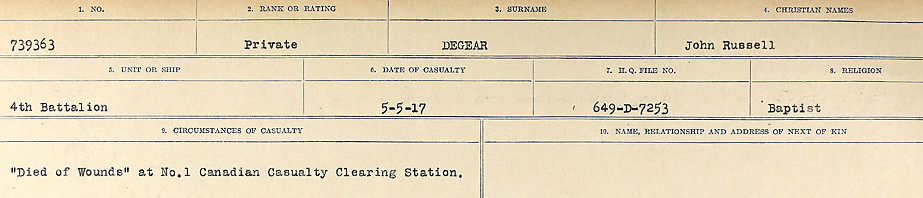 Fils de M. et Mme Simon Degear; époux de Rose Hilda Degear, de Dunnville, Ontario.