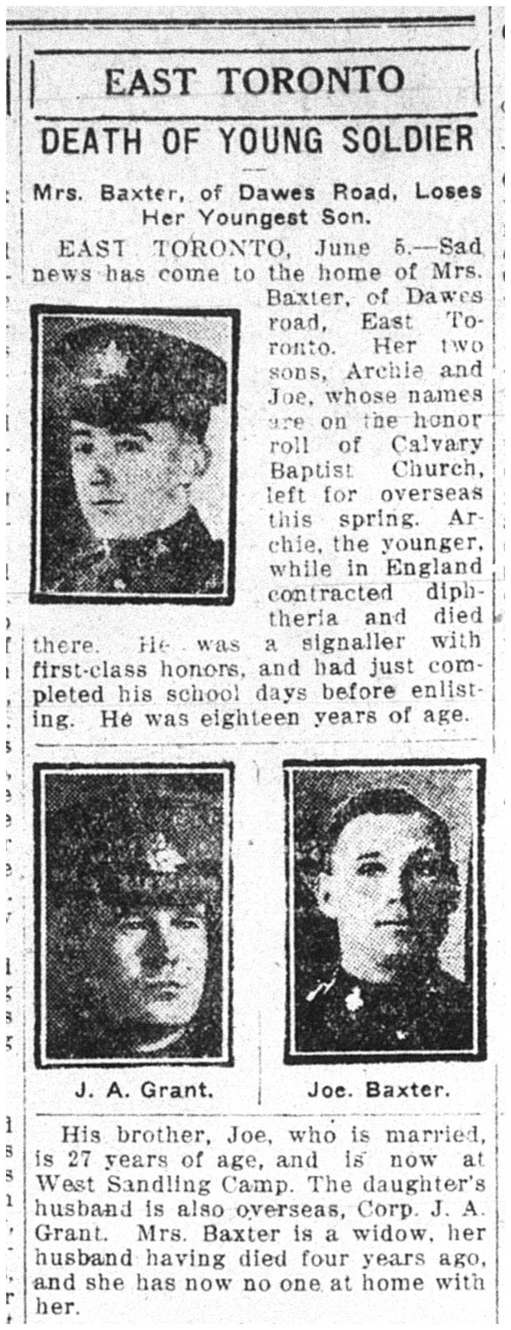 Époux de Margaret Grant, de Coleman, East Toronto.