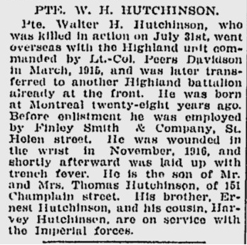 Galerie numérique de Soldat Walter Harold Hutchinson