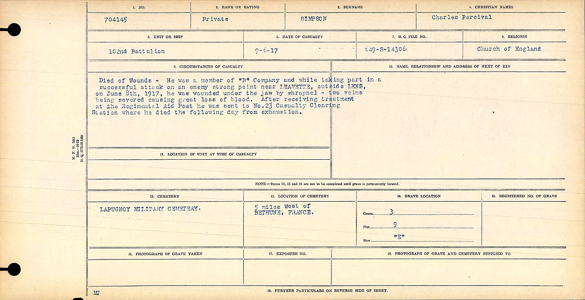 Galerie numérique de Soldat Charles Percival Simpson