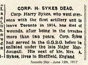 Originaire de Sheffield, Angleterre. Fils de John et Annie E. Sykes, de 559, Keele St., Toronto.