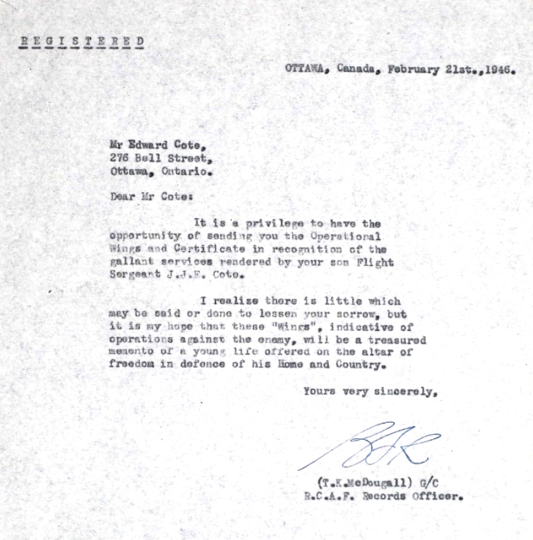 Flight Sergeant Joseph John Edward Cote