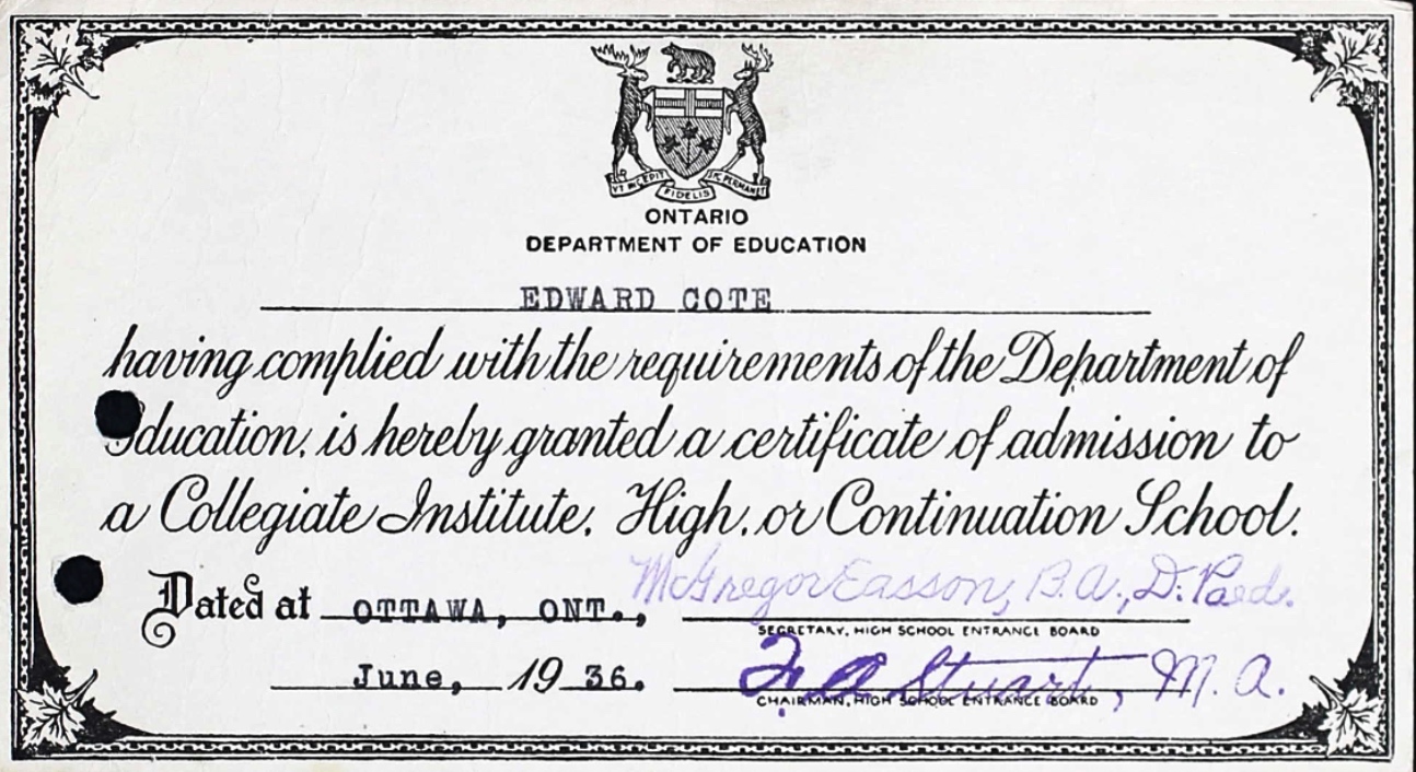 Fils de Flt.Sgt. E. N. Cote, R.C.A.F., et Catharine Cote, de Ottawa. Ontario, Canada.