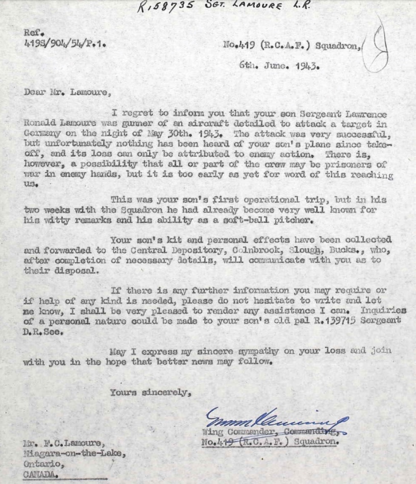 Fils de F. C. et Alice E. Lamoure, de Niagara-on-the-Lake, Ontario.
