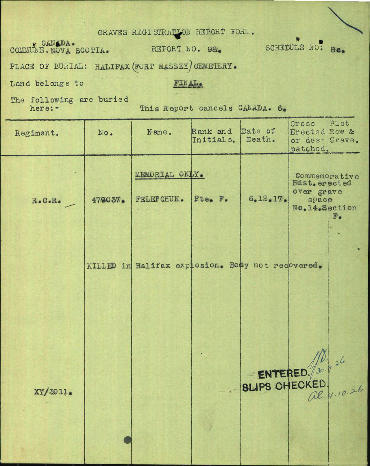 Fils de Steve Felepchuk, de South Slobitka, Podolsk, Russia. Époux d'Ellen Felepchuk de Glace Bay, Cap-Breton, N.S.
