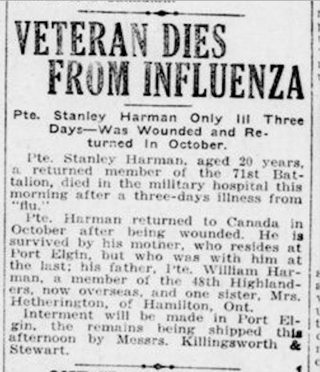 Fils de M. et Mme William M. Harman, de Port Elgin, Ont.