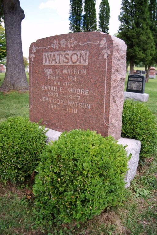 Fils de William Musgrave Watson et Sara Elizabeth Watson, de Britton, Ontario.